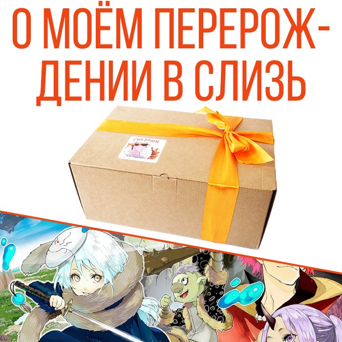 Ламабокс — это подарочный набор из нескольких товаров, связанных с О моём перерождении в слизь. Набор упакован в картонную коробку с оранжевой лентой. Купить Ламабокс на 15-25% дешевле, чем всё отдельно!