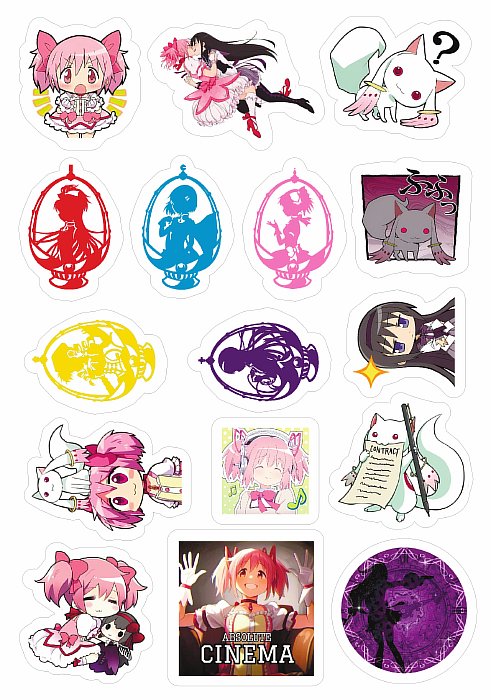 Каждый стикерпак Мадока Магика — это лист с 10-15 яркими наклейками, отобранными фанатами для фанатов :)