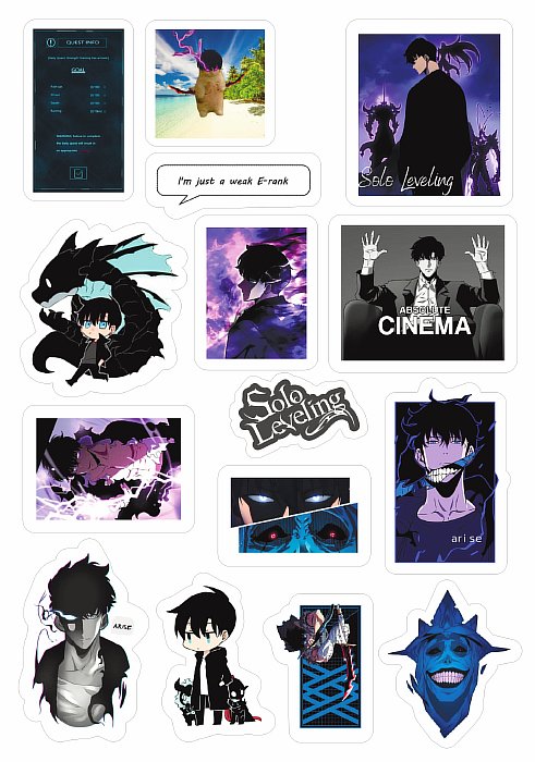 Каждый стикерпак Поднятие уровня в одиночку — это лист с 10-15 яркими наклейками, отобранными фанатами для фанатов :)