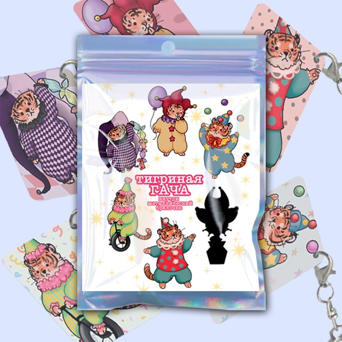 Коллекция брелков-блайндбоксов от Суперлама™ с милыми тигрятами, выступающими (конечно, добровольно!) в цирке. В коллекции есть 6 видов брелков: 5 обычных и 1 редкий. Собери их все!